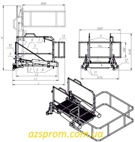 | L, mm | L1, мм | L2, mm | H, мм | Количество стyпеней, шт | Нагрузка на мостик, кг, не более | Угол опускания, град | m, кг | |